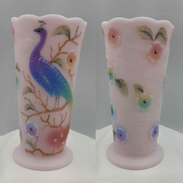 Peacock Vase painted by CC Hardman $125 ONLY 9 LEFT